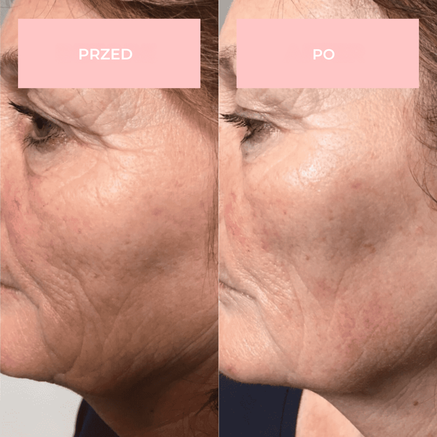Rezultaty często poprawiają się z czasem, a najbardziej zauważalne zmiany – w redukcji drobnych linii, poprawie struktury skóry, rozjaśnieniu przebarwień, cieni pod oczami oraz ogólnej jędrności – pojawiają się po 6-8 tygodniach.