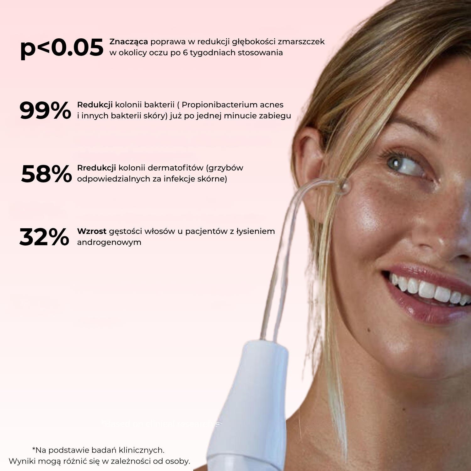 Na podstawie niezależnego badania walidacyjnego przeprowadzonego na 60 osobach w ciągu 30 dni z wykorzystaniem urządzenia Glow Lane 7w1 LED. Wyniki mogą się różnić.